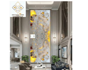 * Tỷ lệ vàng trong kiến trúc: Với kích thước lớn và thiết kế thông tầng, bức tranh đá thông tầng TT03/G35-01 được tính toán tỉ mỉ theo tỷ lệ vàng trong kiến trúc, tạo nên sự cân đối, hài hòa và sang trọng cho không gian.