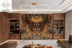 * Hiệu ứng xuyên sáng: Đây là điểm đặc biệt của bức Tranh đá đối xứng DX30/A20-01/402×304. Khi ánh sáng chiếu qua, các lớp đá mỏng cho phép ánh sáng đi qua, tạo nên hiệu ứng lung linh và huyền ảo. Hiệu ứng này làm nổi bật các đường vân và màu sắc của đá, mang đến một vẻ đẹp khác biệt so với đá tự nhiên thông thường.