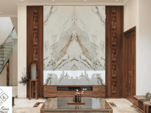 - Thiết kế ấn tượng: Với kích thước [Hãy chèn kích thước chính xác tại đây, ví dụ: 260x320cm], bức tranh đá nhân tạo này tạo nên một bố cục ghép bốn tấm hài hòa, mang đến hiệu ứng thị giác mạnh mẽ và thu hút mọi ánh nhìn. Họa tiết [Mô tả ngắn gọn về họa tiết của tranh, ví dụ: vân đá tự nhiên tinh tế, đường nét uyển chuyển, màu sắc trang nhã] được chế tác tỉ mỉ, thể hiện gu thẩm mỹ độc đáo của gia chủ.