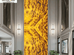 Sự kết hợp hoàn hảo giữa sắc vàng hổ phách và những đường vân nâu gợi cảm, Tranh đá Onyx 19/HT-28/69-28 mang lại cảm giác ấm cúng, gần gũi, nhưng vẫn đủ uy nghi, quyền lực để tạo ấn tượng mạnh ngay từ cái nhìn đầu tiên.