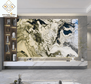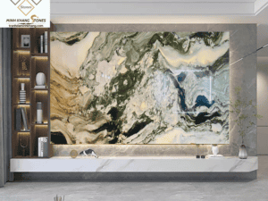 * Các đường vân đá tự nhiên tạo nên những hình ảnh núi non, sông nước sống động.