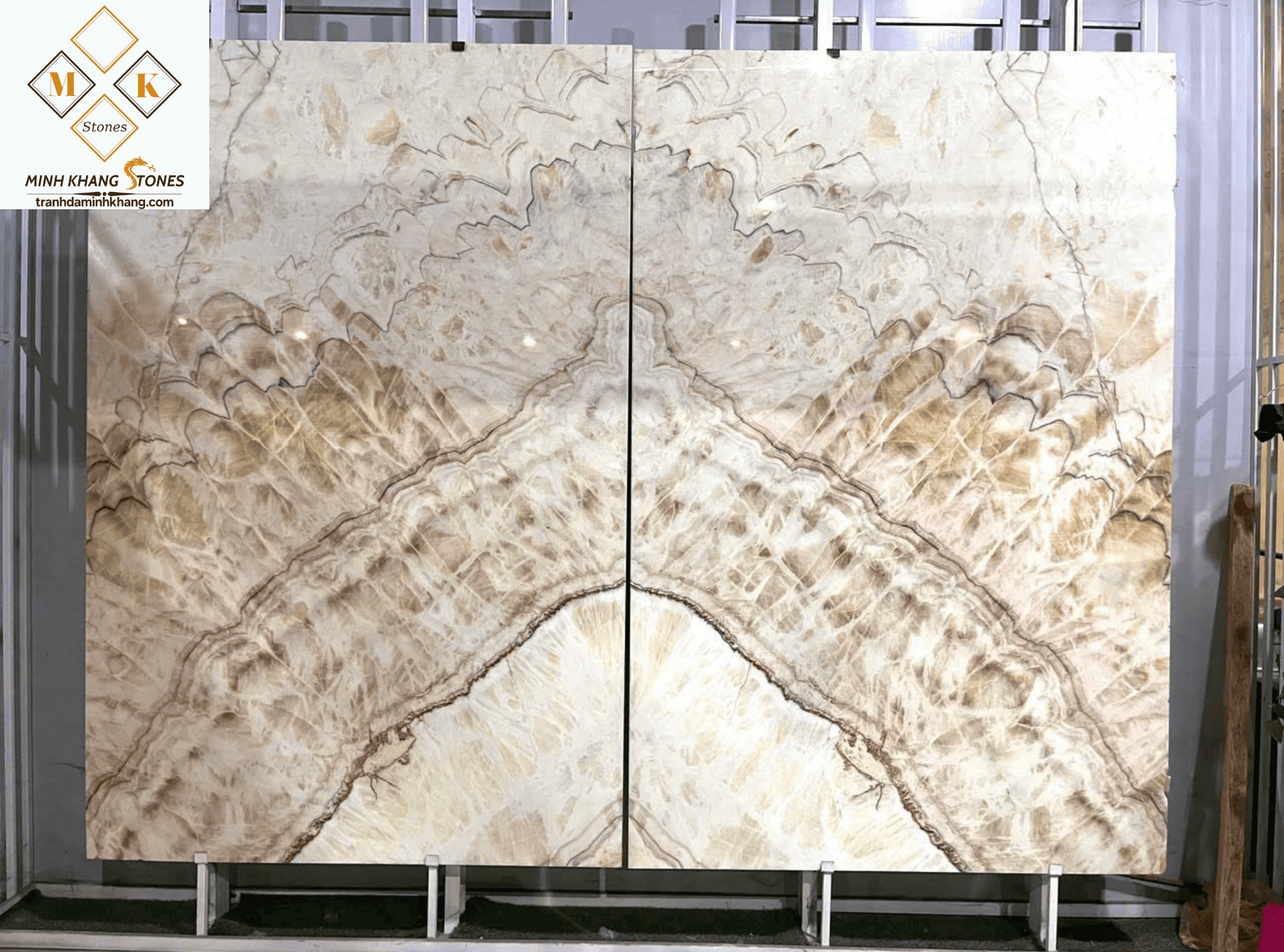 Kết luận: Bức Tranh đá thạch anh TA10/A35-05 là một tác phẩm nghệ thuật tự nhiên độc đáo và ấn tượng. Với thiết kế đối xứng, màu sắc và vân đá tinh tế, cùng hiệu ứng xuyên sáng đặc biệt, nó sẽ trở thành một điểm nhấn nổi bật và mang đến vẻ đẹp sang trọng cho không gian sống của bạn.