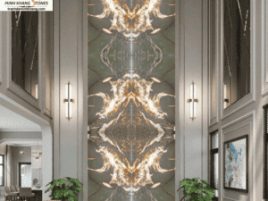 * Hình dáng đối xứng ấn tượng: Hình dáng đối xứng của tấm đá tạo nên một hiệu ứng thị giác đặc biệt, giống như một tác phẩm điêu khắc nghệ thuật. Nó là một điểm nhấn hoàn hảo, thu hút mọi ánh nhìn và tạo nên dấu ấn riêng cho không gian.