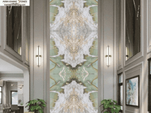 * Tông màu xanh ngọc bích thời thượng: Màu xanh ngọc bích chủ đạo của tấm đá mang đến vẻ đẹp tươi mát, thanh lịch và thời thượng. Đây là tông màu được giới thượng lưu ưa chuộng, góp phần nâng tầm đẳng cấp cho không gian sống.