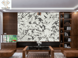 * Màu sắc sang trọng: Tông màu trắng chủ đạo của tấm đá mang đến vẻ đẹp thanh lịch, tinh tế, phù hợp với nhiều phong cách nội thất khác nhau. Những đường vân đen, xám tạo điểm nhấn, mang đến sự sang trọng và đẳng cấp cho không gian.
