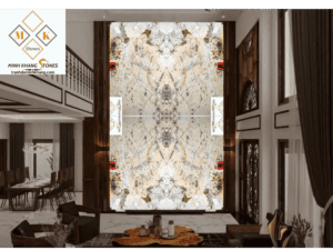 * Tỷ lệ vàng trong kiến trúc: Với kích thước lớn và thiết kế thông tầng, bức tranh đá thông tầng TT03/G35-01 được tính toán tỉ mỉ theo tỷ lệ vàng trong kiến trúc, tạo nên sự cân đối, hài hòa và sang trọng cho không gian.