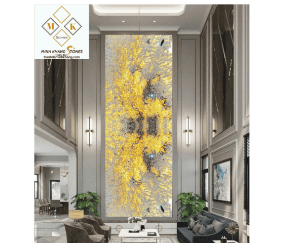 * Tỷ lệ vàng trong kiến trúc: Với kích thước lớn và thiết kế thông tầng, bức Tranh đá thông tầng TT05/G30-01/đuôi công được tính toán tỉ mỉ theo tỷ lệ vàng trong kiến trúc, tạo nên sự cân đối, hài hòa và sang trọng cho không gian.