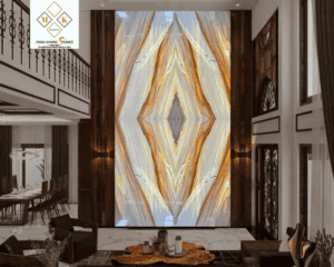 Tranh đá thông tầng TT09/G39-02/Golden Macaubas: Tuyệt Tác Ánh Sáng Vàng Cho Không Gian Thông Tầng Đẳng Cấp