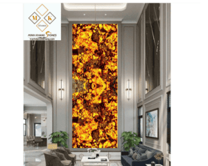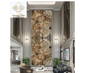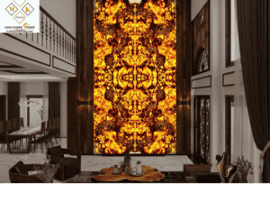 * Với kích thước lớn, bức tranh đá thông tầng TT12/G45-50/Petagonia Gold trở thành điểm nhấn trung tâm của không gian.