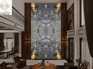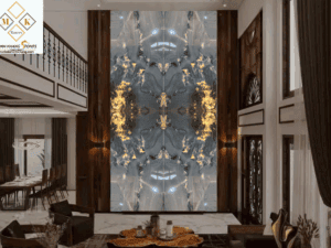 Tông xám trung tính kết hợp cùng vân đá vàng ánh lửa, Tranh đá thông tầng TT37/HT-18/69-18 mang đến cảm giác trầm tĩnh, quyền lực, như linh hồn của núi rừng cổ đại được đánh thức giữa lòng hiện đại.